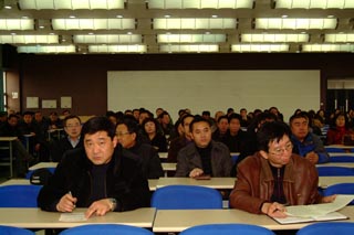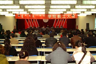 2012年2月28日下午,學(xué)院在交通樓4樓多功能廳召開全院教工大會(huì)。學(xué)院黨委書記孫智憑,院長(zhǎng)柴金義,常務(wù)副院長(zhǎng)董平,黨委副書記、紀(jì)委書記白托婭,副院長(zhǎng)孫恒、武鈞,黨委委員科研處處長(zhǎng)李宏、教務(wù)處處長(zhǎng)趙志蒙出席會(huì)議。學(xué)院各系部負(fù)責(zé)人、各職能部門負(fù)責(zé)人及全體教職工300多人參加了大會(huì)。