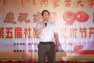 學(xué)工處副處長(zhǎng)高飛在晚會(huì)上致詞,他說(shuō):"共產(chǎn)主義青年團(tuán),是共產(chǎn)黨領(lǐng)導(dǎo)的先進(jìn)青年的群眾組織,是廣大青年在實(shí)踐中學(xué)習(xí)共產(chǎn)主義的學(xué)校,是共產(chǎn)黨的得力助手和后備軍。社團(tuán)文化藝術(shù)節(jié)是校園文化的重要組成部分,當(dāng)代青年學(xué)生,不僅要有堅(jiān)定的理想信念,高尚的道德情操,扎實(shí)的文化功底,更需要有良好的禮儀素養(yǎng),儒雅的藝術(shù)底蘊(yùn),創(chuàng)新的藝術(shù)構(gòu)想。我們之所以堅(jiān)持不懈開(kāi)展各類(lèi)校園文化活動(dòng),年年舉辦文化藝術(shù)節(jié),就是要提高學(xué)院學(xué)生綜合素質(zhì),讓每個(gè)學(xué)生都能健康成長(zhǎng),成為適應(yīng)新世紀(jì)多元化發(fā)展的有用人才。社團(tuán)文化藝術(shù)節(jié)期間還包括敬老院送溫暖,共青團(tuán)知識(shí)競(jìng)賽、歌手大賽、詩(shī)歌評(píng)比、趣味游戲等活動(dòng)。希望更多的同學(xué)加入我們的社團(tuán),加入我們的社團(tuán)活動(dòng),讓社團(tuán)成為學(xué)院校園文化的主力軍。預(yù)祝內(nèi)蒙古大學(xué)交通學(xué)院慶祝建團(tuán)90周年暨第五屆社團(tuán)文化藝術(shù)節(jié)圓滿成功。"