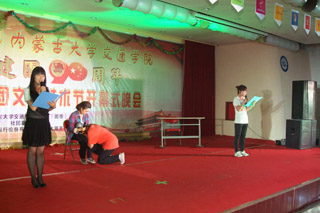 2012年5月8日晚7:00,學(xué)院在交通樓四樓多功能廳舉辦了內(nèi)蒙古大學(xué)交通學(xué)院慶祝共青團(tuán)建團(tuán)90周年暨“顯社團(tuán)原色 展交院風(fēng)采”第五屆社團(tuán)文化藝術(shù)節(jié)開(kāi)幕式。