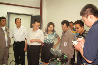 北京市道路工程質(zhì)量監(jiān)督站站長周緒利(右二),學(xué)院黨委書記孫智憑(右一),學(xué)院院長柴金義(左一) |