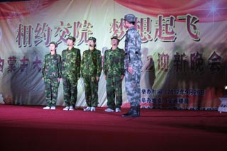 姿態(tài)曼妙的頂碗舞拉開了晚會(huì)序幕,場面盛大的晚會(huì)以歌曲《我的未來不是夢》《站起來》,詩朗誦《獻(xiàn)給2012的學(xué)子》,舞蹈《kill the beats》,小品《軍訓(xùn)小趣》表現(xiàn)了“等待,夢想的花開”的主題;以歌曲《想你的夜》,樂器演奏《軍港之夜》,舞蹈《碧波孔雀》,歌曲《護(hù)花使者》,舞蹈《kiss fire》表現(xiàn)了“舞動(dòng),美麗的青春”的主題;以歌曲《我的父親是牧馬人》,小品《推銷》,街舞《舞動(dòng)青春》,相聲《姑娘小伙別這樣》表現(xiàn)了“譜寫,騰飛的贊歌”的主題,晚會(huì)在軍樂團(tuán)的演奏、學(xué)生聯(lián)合會(huì)合唱的《走向復(fù)興》《中國,中國,鮮紅的太陽永不落》圓滿落下了帷幕。眾多的優(yōu)秀節(jié)目,讓大家感受到了青春澎湃的力量,給2012級新生留下了美好的回憶。同學(xué)們的表演精彩紛呈,觀眾掌聲熱烈,兩個(gè)小時(shí)的晚會(huì)始終洋溢著熱烈祥和的氛圍。