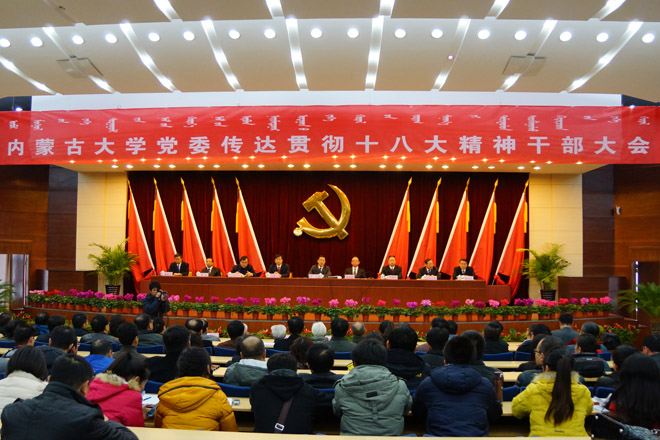 在全校干部大會(huì)上,侯元書記介紹了黨的十八大盛況;傳達(dá)了十八大的重要精神,并結(jié)合實(shí)際對十八大報(bào)告重要內(nèi)容進(jìn)行了解讀;傳達(dá)了內(nèi)蒙古自治區(qū)黨委書記胡春華在黨的十八大內(nèi)蒙古代表團(tuán)全體會(huì)議上的講話精神和教育部黨組關(guān)于教育系統(tǒng)認(rèn)真學(xué)習(xí)貫徹黨的十八大精神的通知精神。