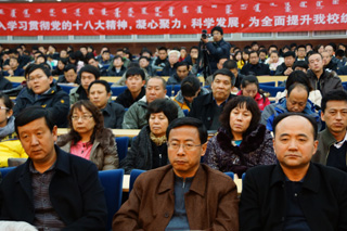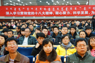 為了深入學(xué)習(xí)貫徹黨的十八大精神,把我校廣大師生員工思想和行動(dòng)統(tǒng)一到黨的十八大精神上來,把力量凝聚到實(shí)現(xiàn)黨的十八大確定的各項(xiàng)任務(wù)上來,努力辦好人民滿意的教育,推動(dòng)學(xué)??茖W(xué)發(fā)展,學(xué)校于2012年11月20日下午3:00在學(xué)術(shù)會(huì)議中心9號會(huì)議室召開全校傳達(dá)貫徹黨的十八大精神干部大會(huì)。