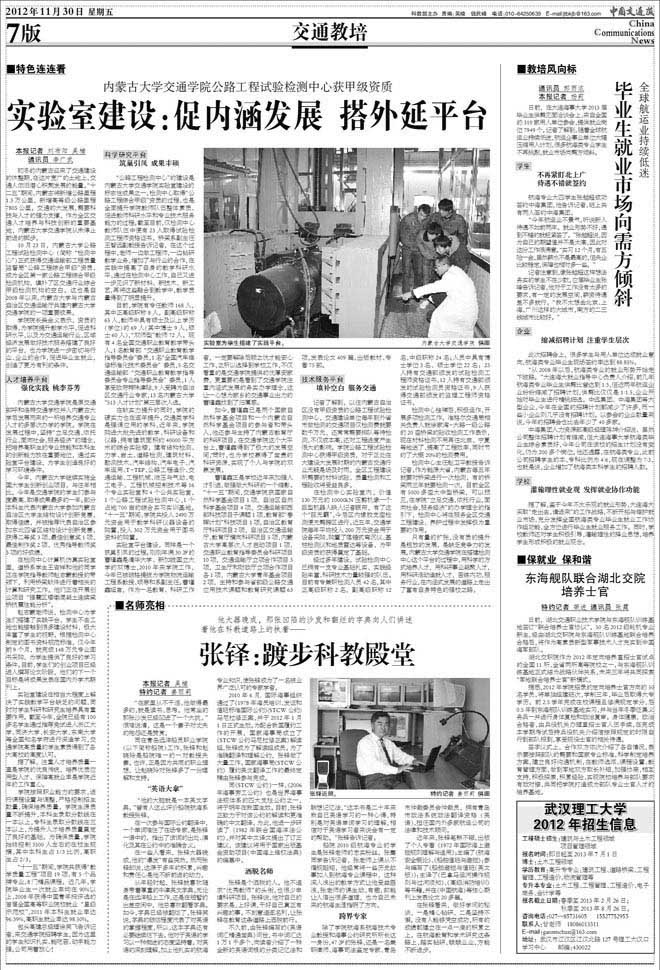只有量的擴(kuò)張,沒有質(zhì)的提升是粗放的發(fā)展,是缺乏競爭力的發(fā)展。內(nèi)蒙古大學(xué)交通學(xué)院在搭建檢測中心這個(gè)平臺的過程中,用科學(xué)的方式培養(yǎng)人才,用科研事業(yè)凝聚人才,用科研活動造就人才,苦練內(nèi)功,服務(wù)行業(yè),在內(nèi)涵式發(fā)展的道路上走出了富有自身特色的強(qiáng)校之路。