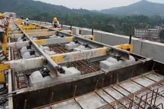 8月中下旬,在開展黨的群眾路線教育實(shí)踐活動(dòng)中,為了解用人單位的服務(wù)需求,特別是在高速鐵路建設(shè)管理及人才使用的實(shí)際情況下,學(xué)院柴金義院長(zhǎng)、董平常務(wù)副院長(zhǎng)利用小學(xué)期之際,選擇中交二公局承建的貴州至廣州高鐵建設(shè)項(xiàng)目進(jìn)行調(diào)研考察,重點(diǎn)考察貴廣高鐵GGTJ—5標(biāo)段隧道無(wú)砟軌道施工工地。