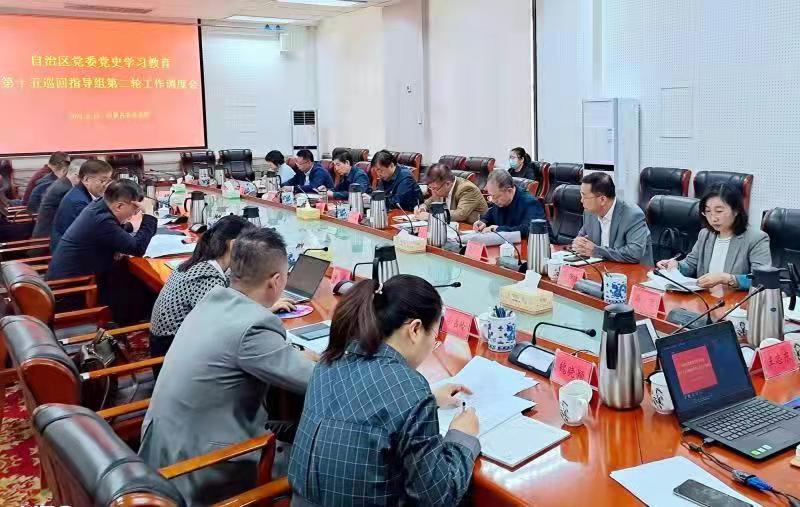 第十五巡回指導(dǎo)組副組長(zhǎng)梁榮主持會(huì)議并傳達(dá)了白玉剛部長(zhǎng)在全區(qū)教育系統(tǒng)黨史學(xué)習(xí)教育工作專題推進(jìn)會(huì)上的講話精神。