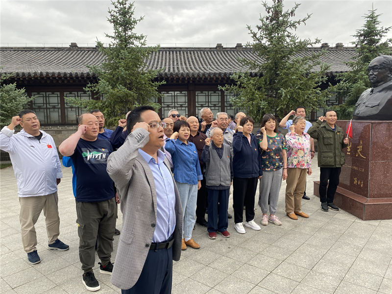 首先,全體黨員佩戴黨徽走近革命先輩烏蘭夫雕像,帶著無限敬仰和崇高敬意,向?yàn)跆m夫同志雕像三鞠躬致敬。接著,面對黨旗,全體黨員再一次莊嚴(yán)宣誓,重溫了入黨時(shí)的決心和信念,進(jìn)一步激發(fā)了傳承紅色基因、賡續(xù)紅色血脈的責(zé)任感和使命感。
